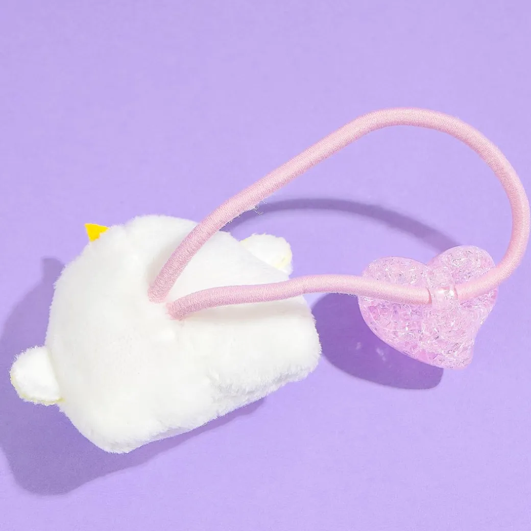Add a touch of kawaii to your hairstyle using this super cute rubber hair tie! It features a kawaii Obakenu ghost plushie and a glittery heart charm.