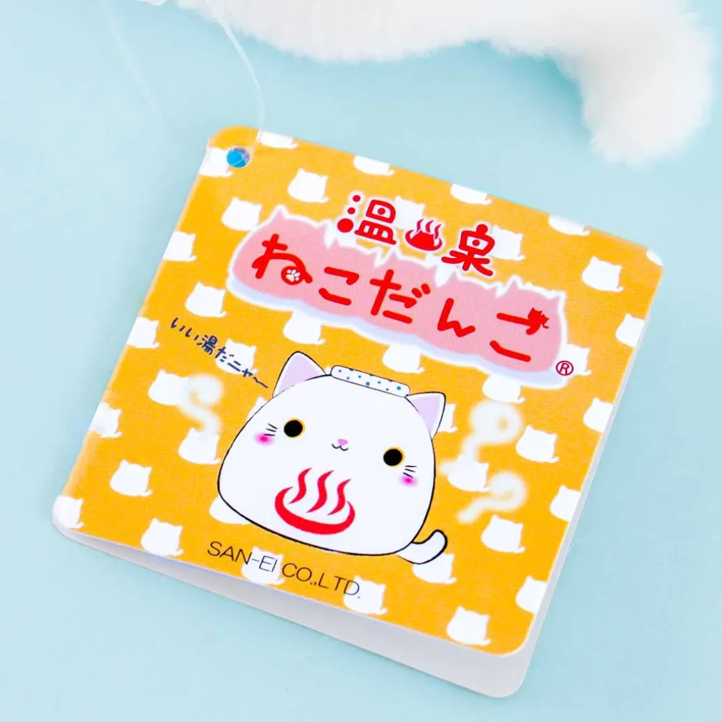 - A soft Neko Dango cat plushie with a hot spring symbol on its fur