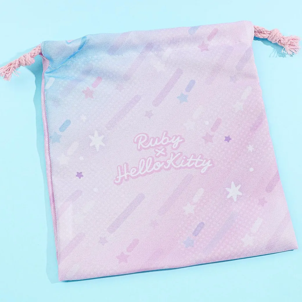This kawaii drawstring pouch comes from a collab between Sanrio and Oshi no Ko. It’s illustrated with Ruby Hoshino and Hello Kitty dressed up like each other! Use it to store your trinkets. Just pull the strings to close this pouch.