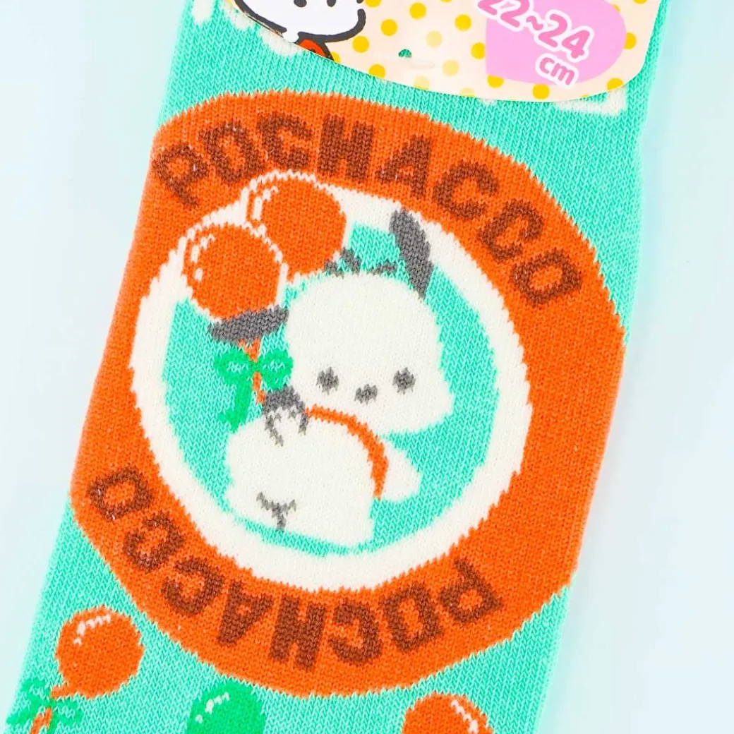 - A cute pair of socks printed with illustrations of Pochacco and balloons