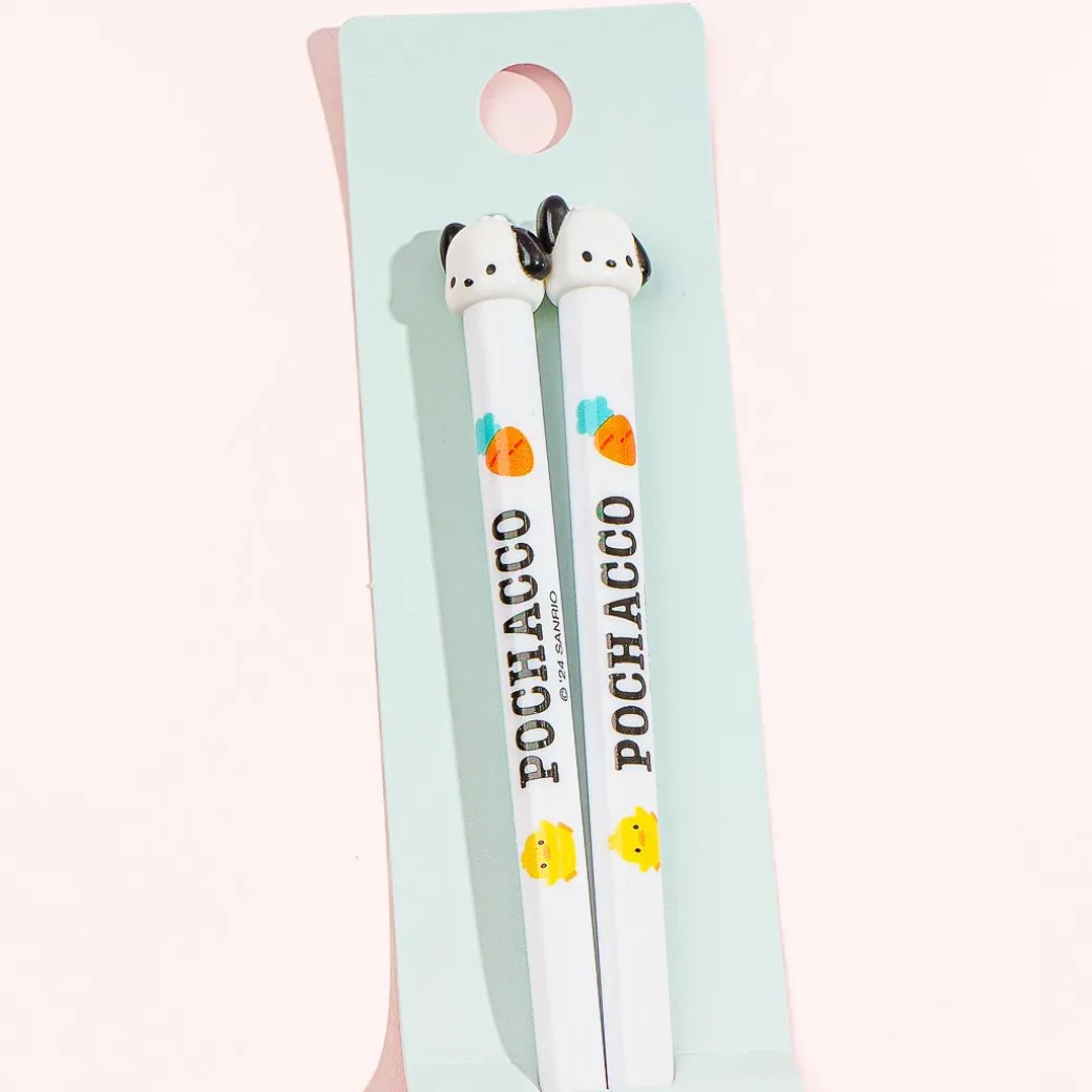 Take this super cute white pair to your next picnic! It’s decorated with kawaii mini-sized Pochacco face toppers on one side! These reusable chopsticks also not be placed inside the dishwasher or dish dryer.