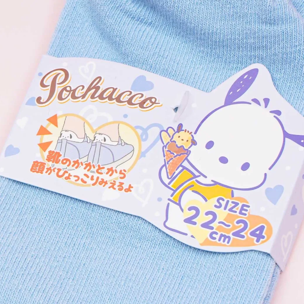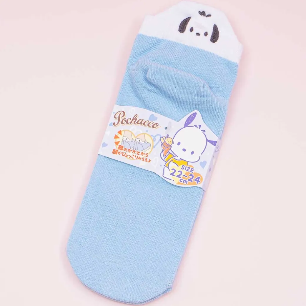 - A kawaii pair of heel socks with embroidery of Pochacco