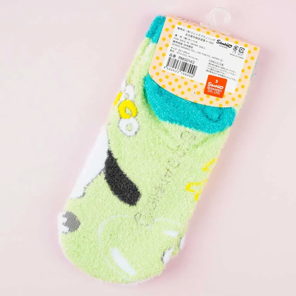 - A pair of fluffy socks with prints of Pochacco