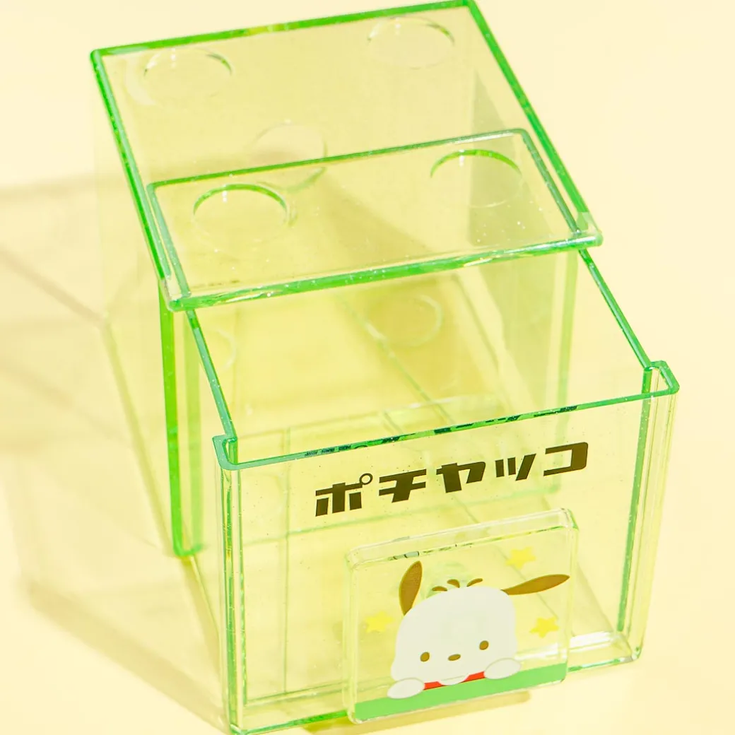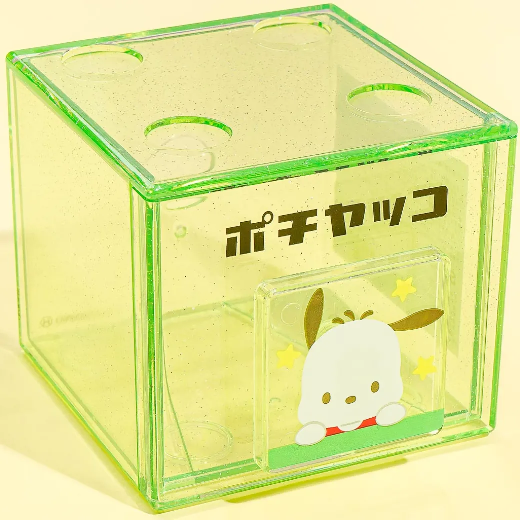Store coins, paper clips, and other random small knickknacks inside this clear mini chest with glitters! It also comes with a square handle that has a cute print of Pochacco! This box case can be stacked with other chests from the same collection as well!
