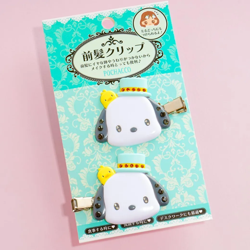 These super cute clips have Pochacco face charms with hats that are studded with jewels! Wear this kawaii pair to keep your bangs away from your face while applying a beauty mask.