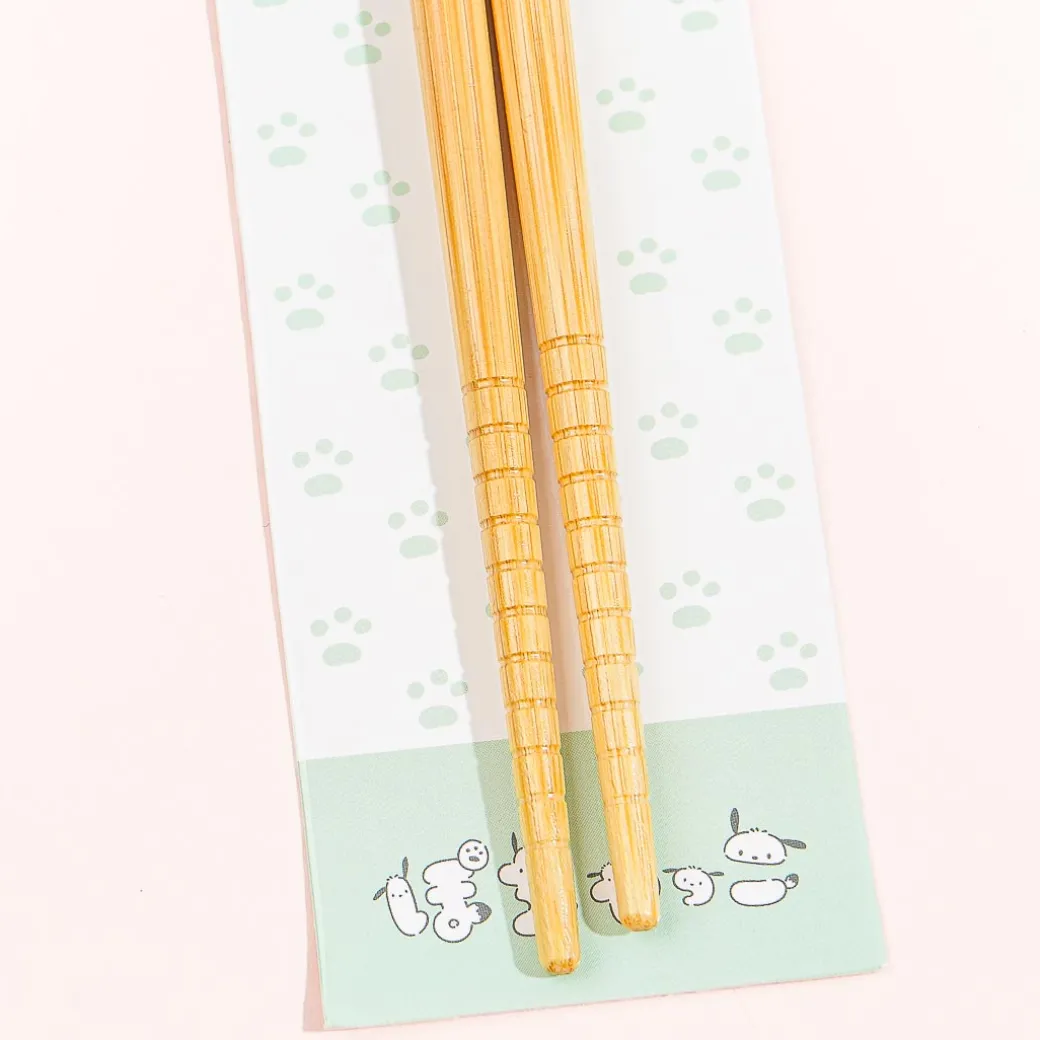 These kawaii chopsticks are decorated with unique prints of Pochacco shaped as Hiragana characters that spell out his name! Use this reusable bamboo pair with non-slip tips whenever you eat your favorite dim sum.
