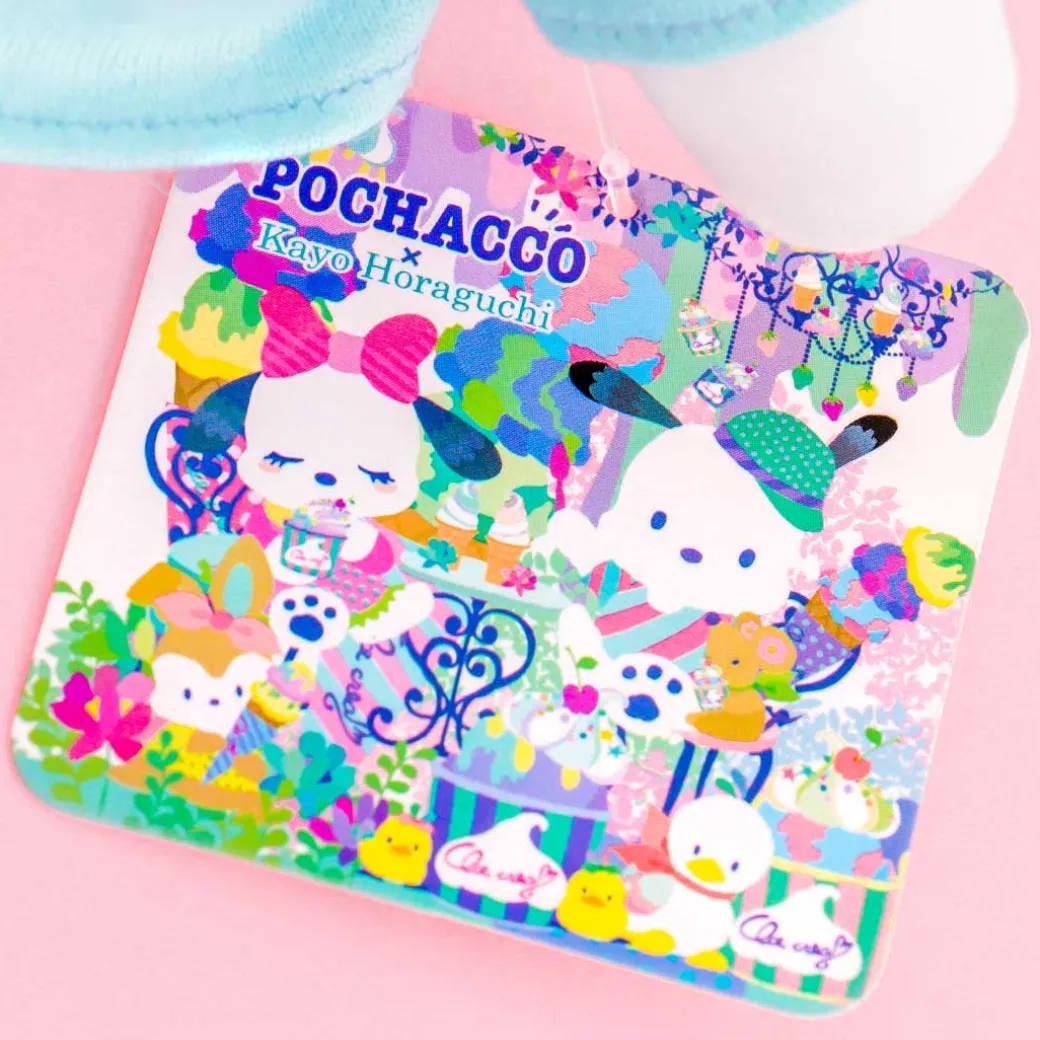 - A medium-sized Pochacco plushie wearing an ice cream-themed outfit