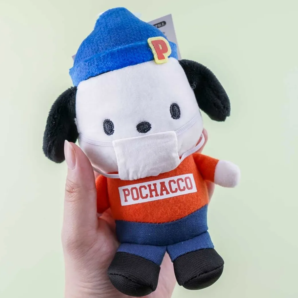 - A kawaii medium-sized Pochacco plushie wearing a mask that you can pull down