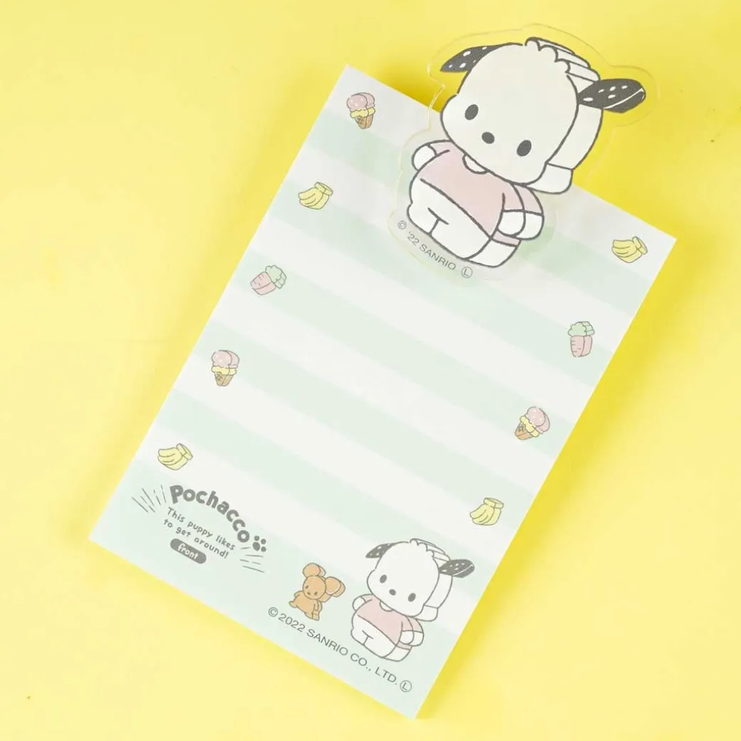 - A cute memo pad decorated with illustrations of Pochacco and his friend, Choppy