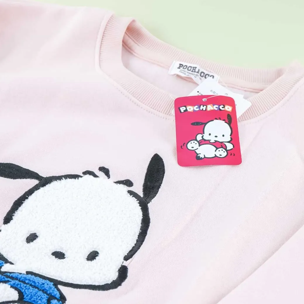 - A kawaii sweatshirt printed with illustration of Pochacco and his friend, Mon-Mon