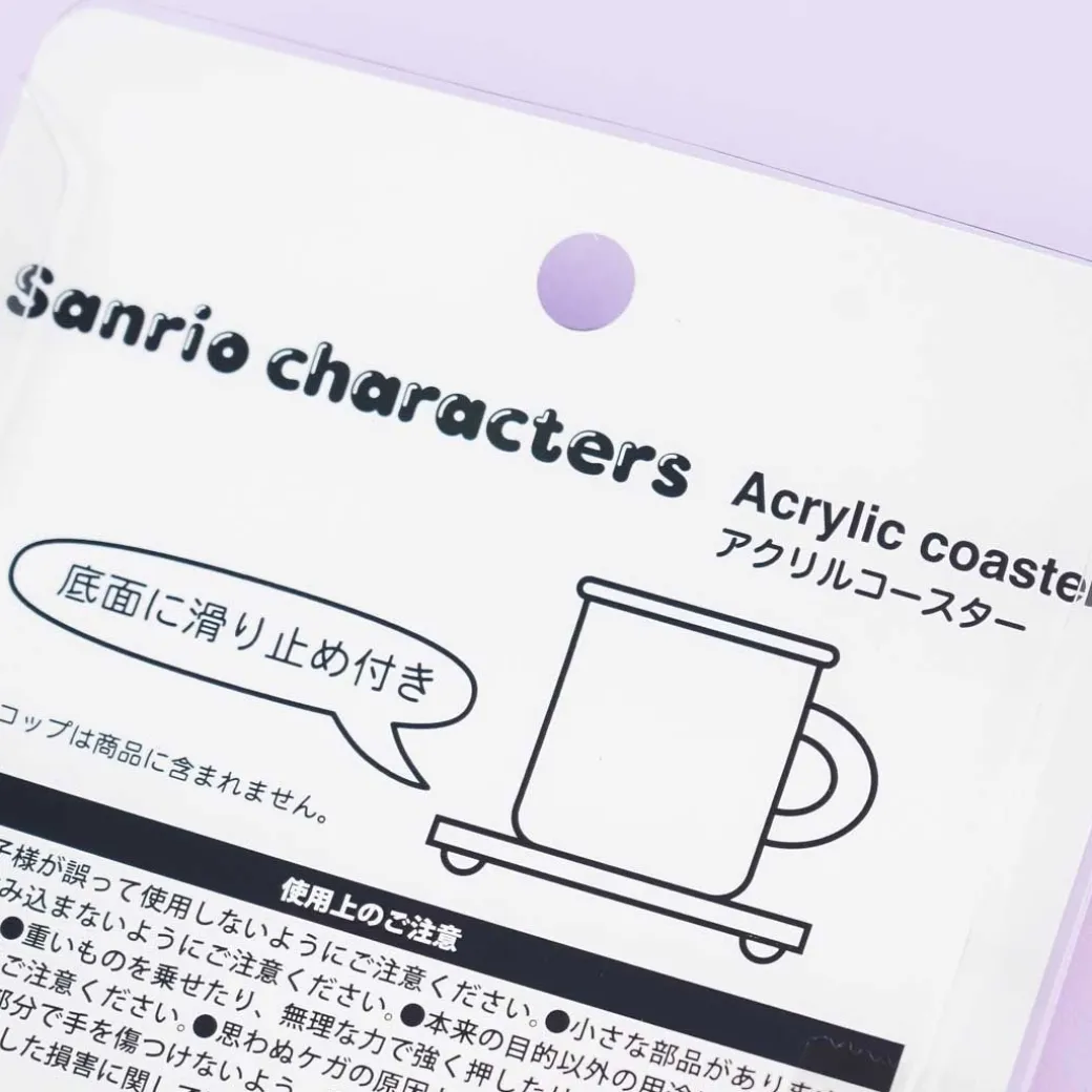 - A cute acrylic coaster illustrated with Pochacco, coffee, and pancakes