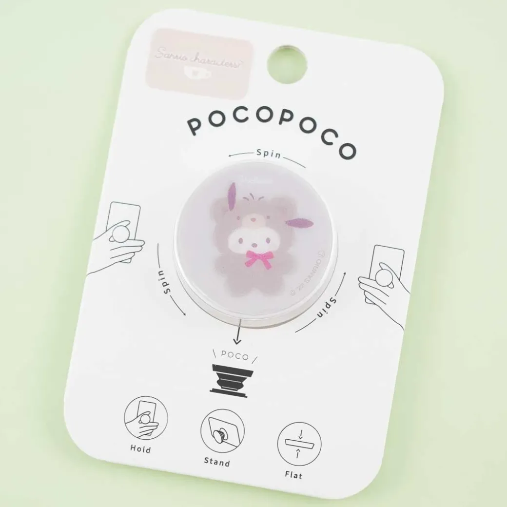 - A kawaii smartphone ring featuring a print of Pochacco in a bear onesie