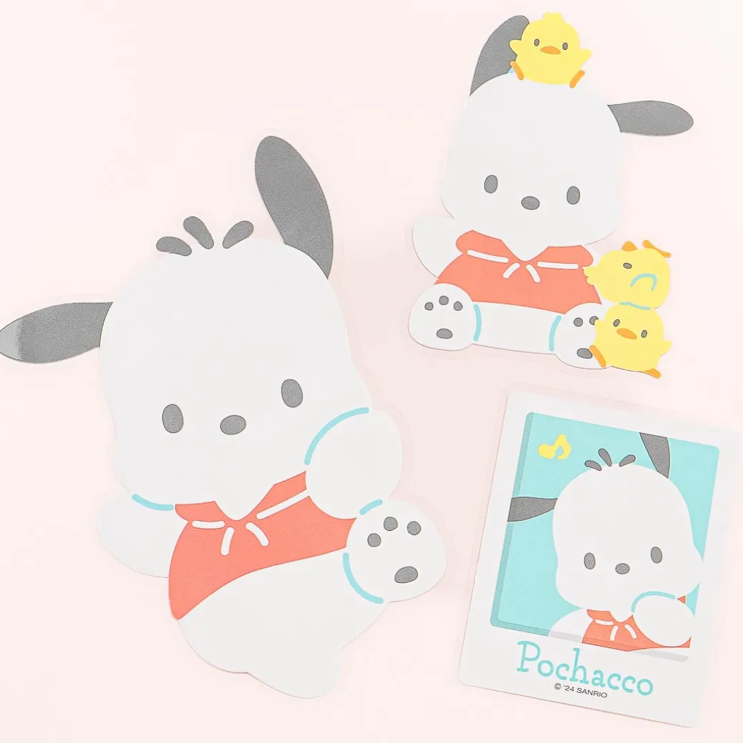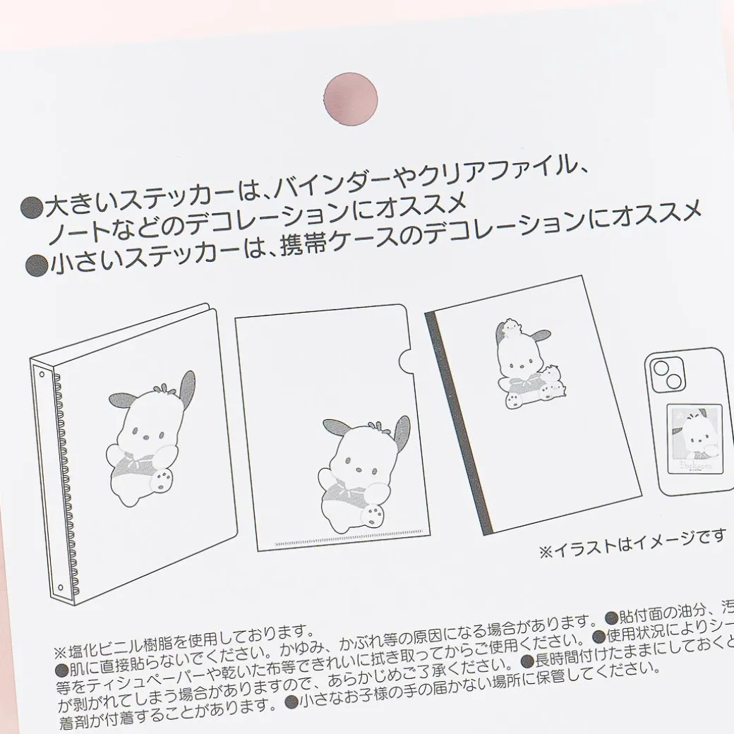 This kawaii set of stickers features die-cut prints of Pochacco doing various photo poses with his friends, The Pi-Chans! Use these seals to jazz up your scrapbooks and other craft projects.