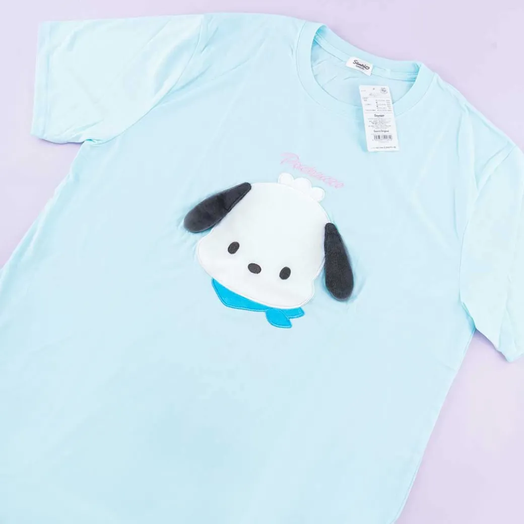 - A super cute shirt featuring a print of Pochacco wearing a scarf