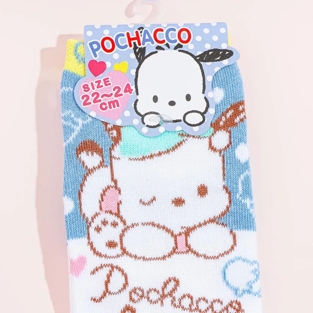 Complete your kawaii outfit of the day with this cute pair of socks! It showcases illustrations of Pochacco getting ready to sleep. These socks are super comfy to wear.