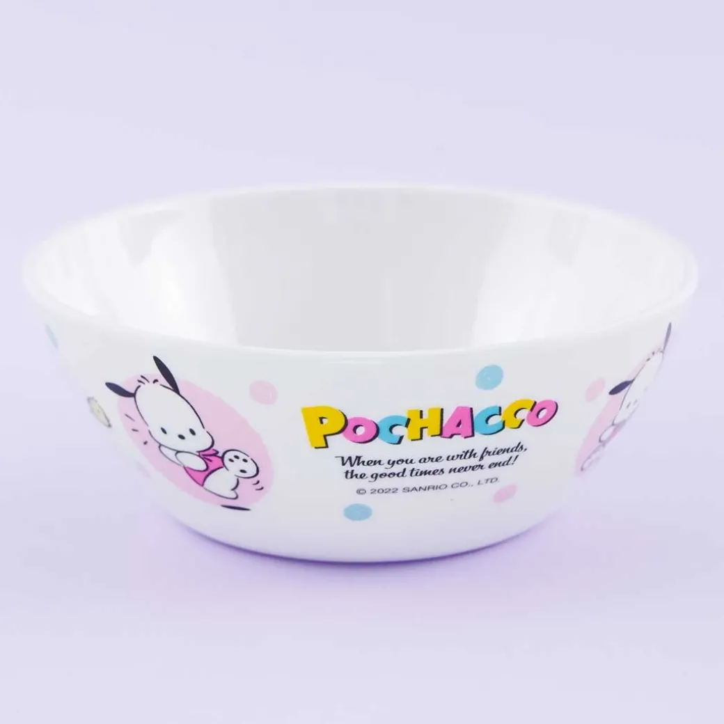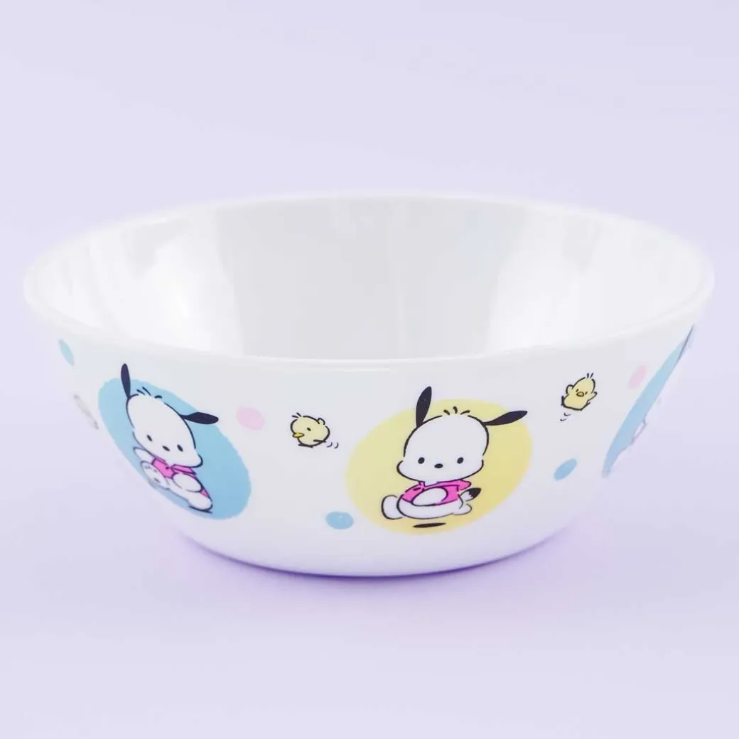 - A kawaii soup bowl with illustrated with Pochacco and the Pi-chans