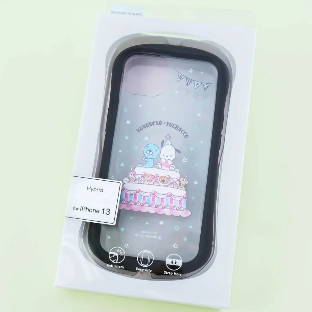 - A super kawaii clear phone case showcasing a print of Pochacco with Bonobono on a cake