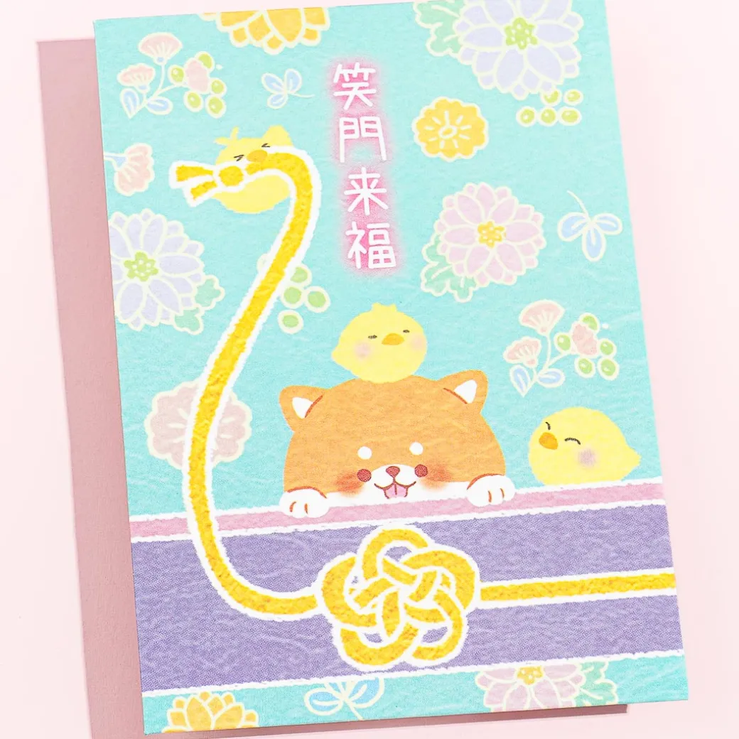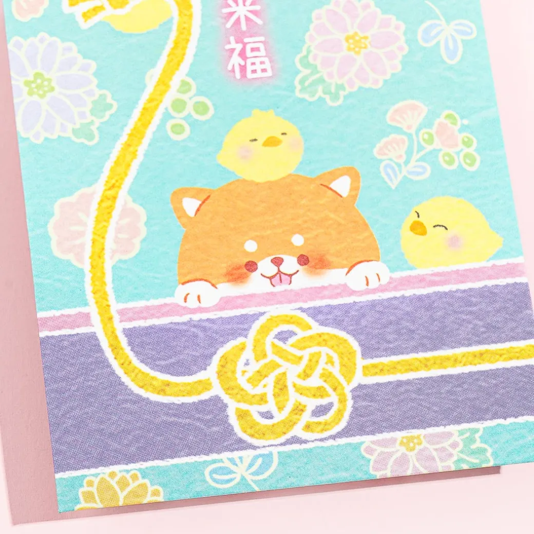 Send fun messages to friends with this cute set of New Year’s envelopes. They feature prints of a Shiba Inu puppy playing with chicks. You can also use them to send fun New Year’s gifts – just make sure you fold your paper bills in half.