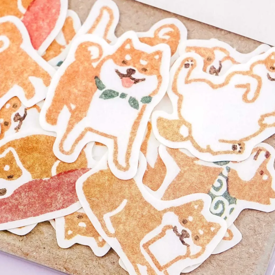 - A pack of kawaii die-cut deco stickers featuring Shiba Inus