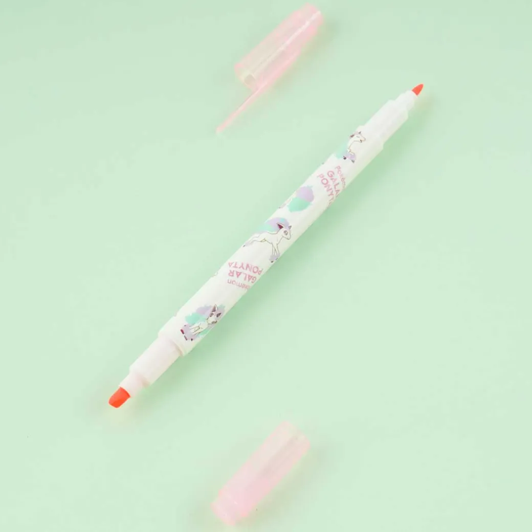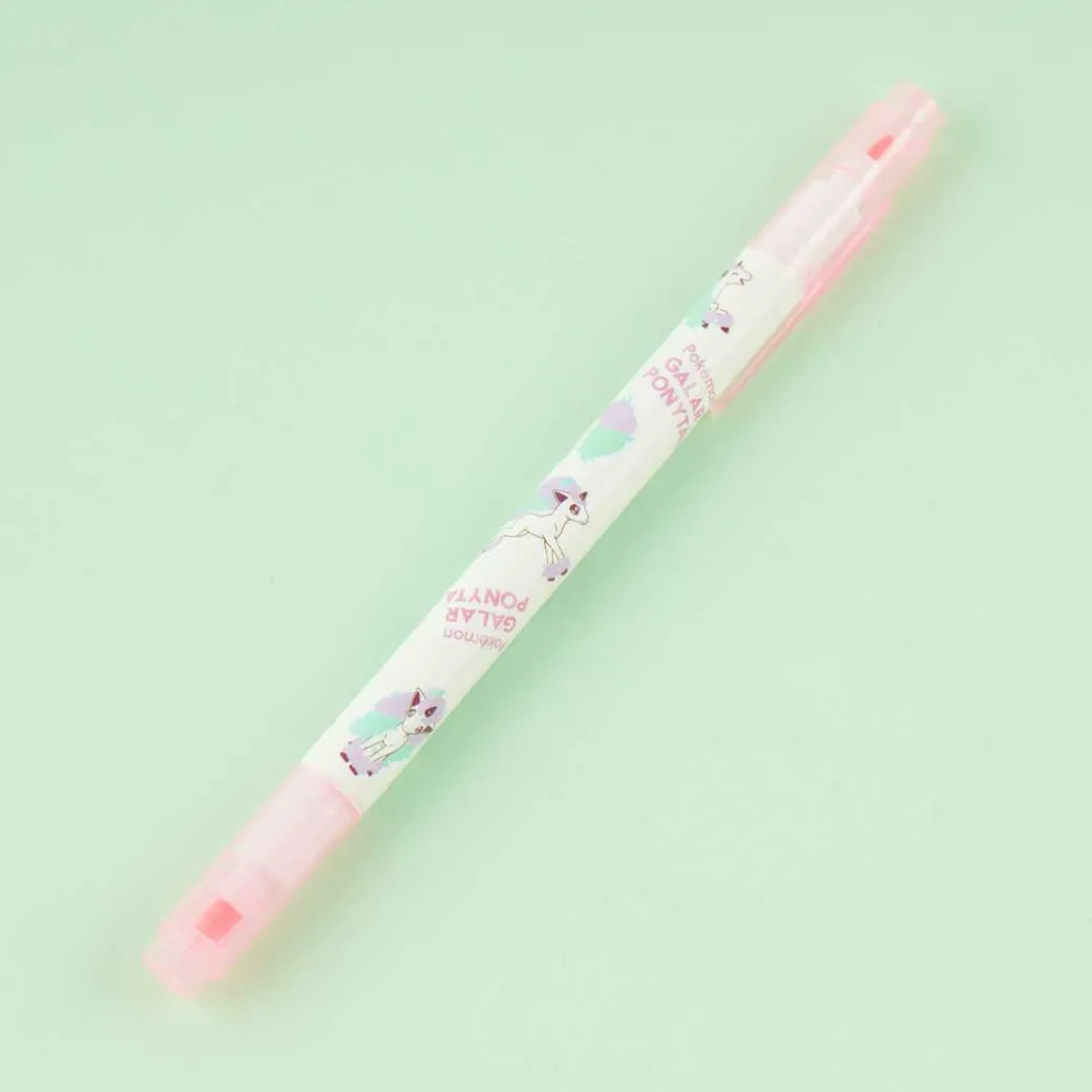 Have fun using this highlighter that has both thick and thin nibs as you decorate your scrapbook! The highlighter body is decorated with illustrations of the Galarian version of Ponyta.