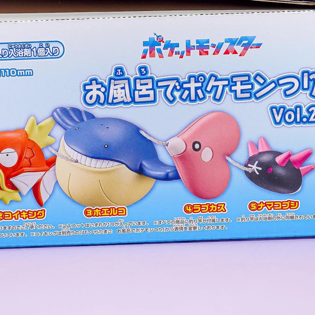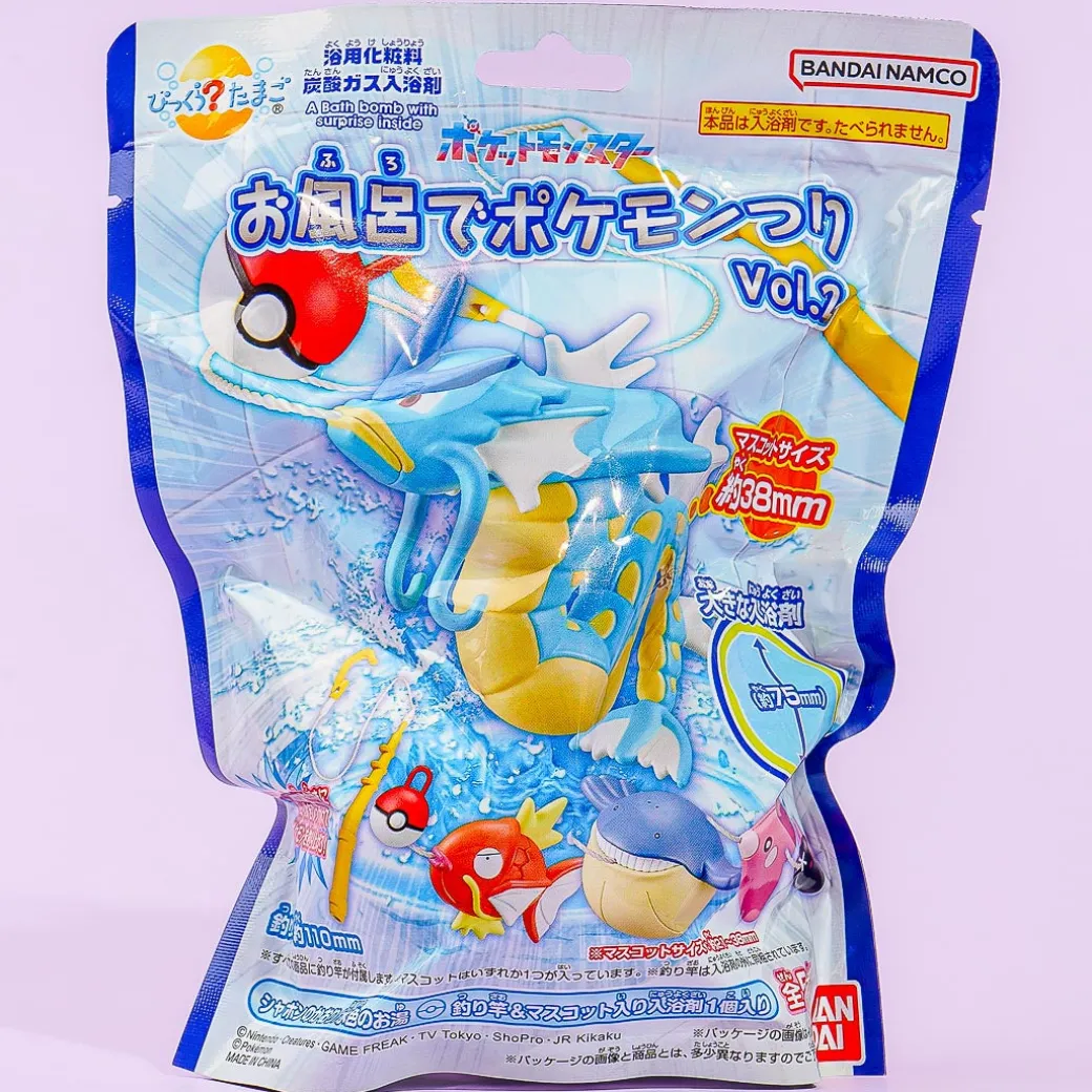 This soap-scented bath bomb is what you need for a fun bath time! Put the bath bomb in the water and watch a Pokemon figure come out! It also comes with a fishing rod that you can use to catch your Pokemon figure from the tub!