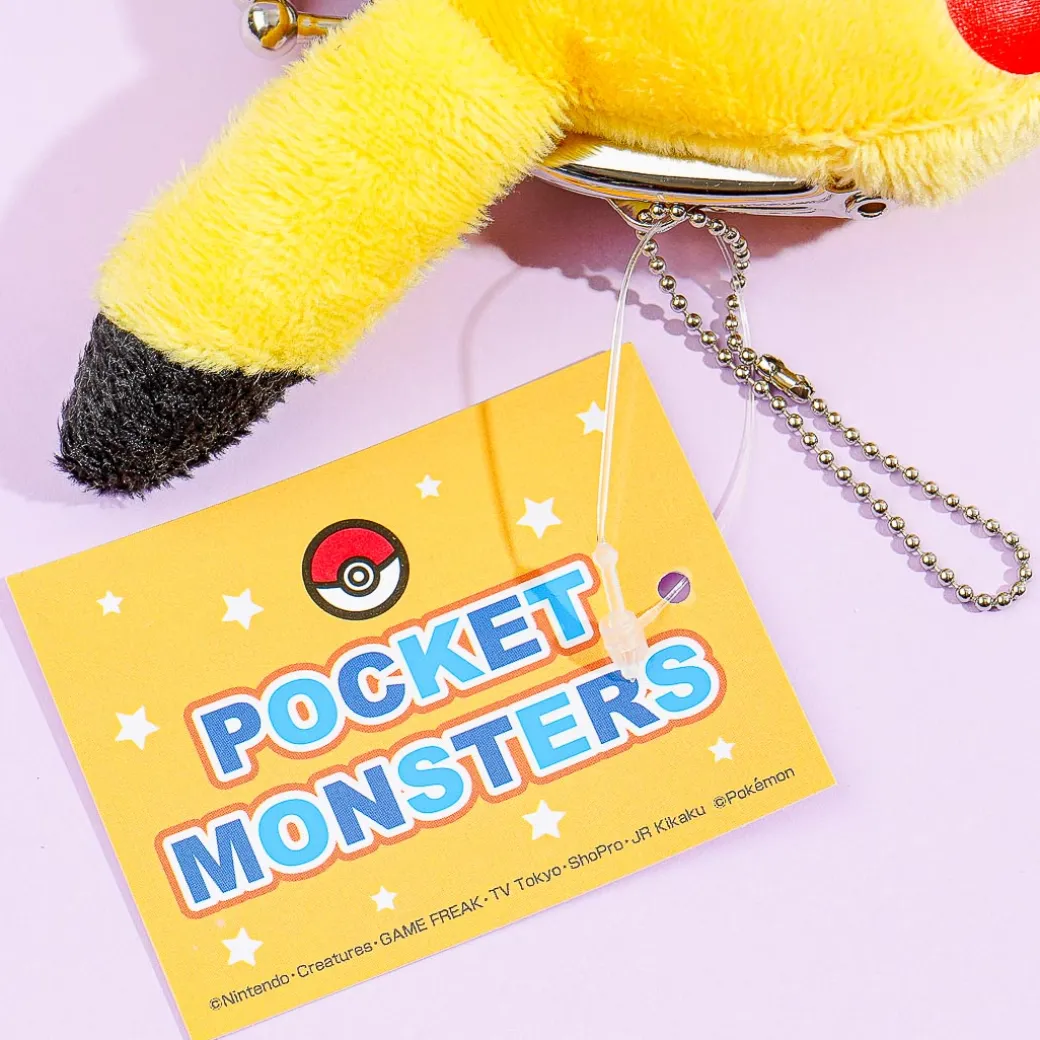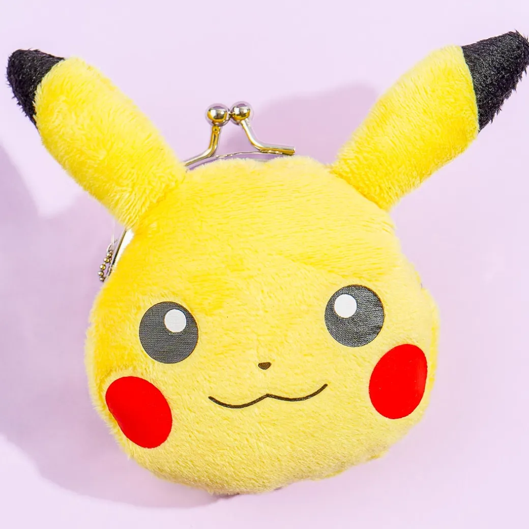 Keep your coins inside this cute purse shaped like Pikachu’s head! This die-cut plushie purse from Pokemon has a metal clasp closure and a removable ball chain.