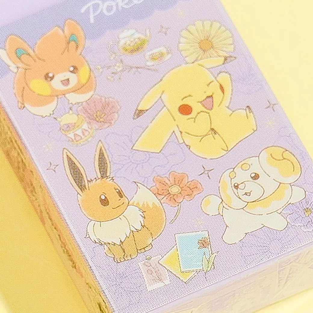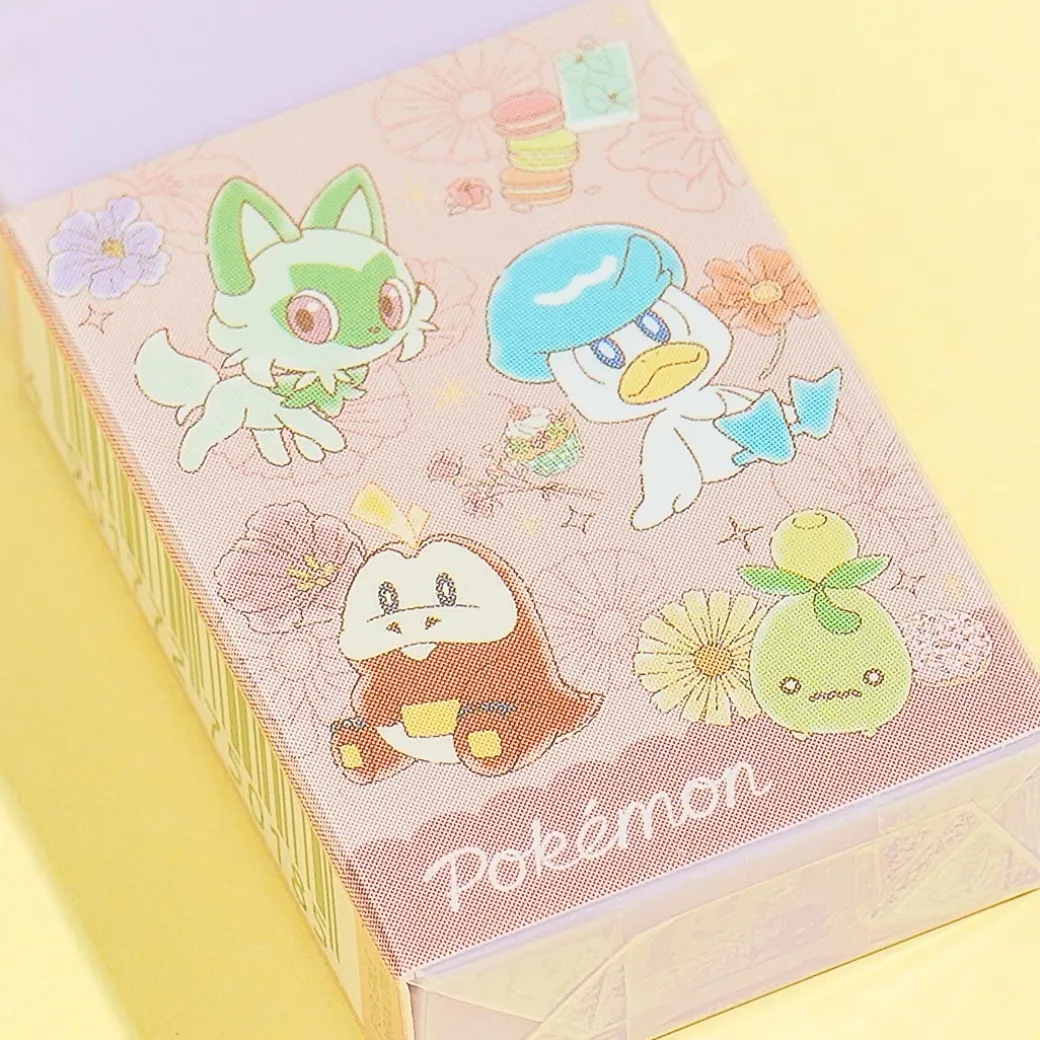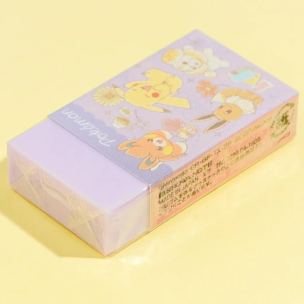 This cute eraser is decorated with prints of Pokemon having fun together. Use it to keep your notes nice and clean! It has a nice pastel lavender color.