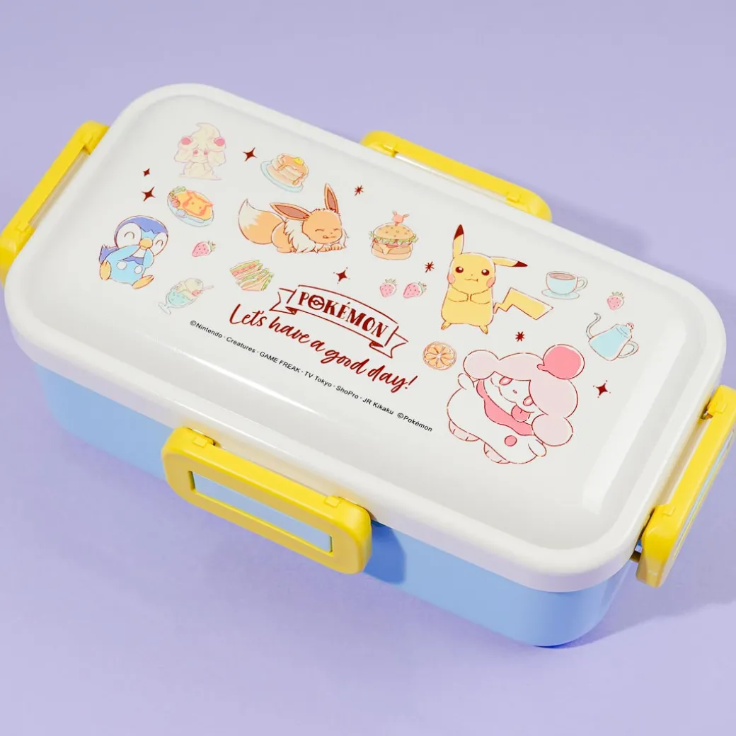 Take this super cute slim-type bento box to your next picnic! Its dome-shaped lid has quadruple snap locks and is decorated with prints of popular Pokemon characters surrounded by lots of food! This lunchbox also contains silver ions that have antibacterial properties — making it food-grade safe.