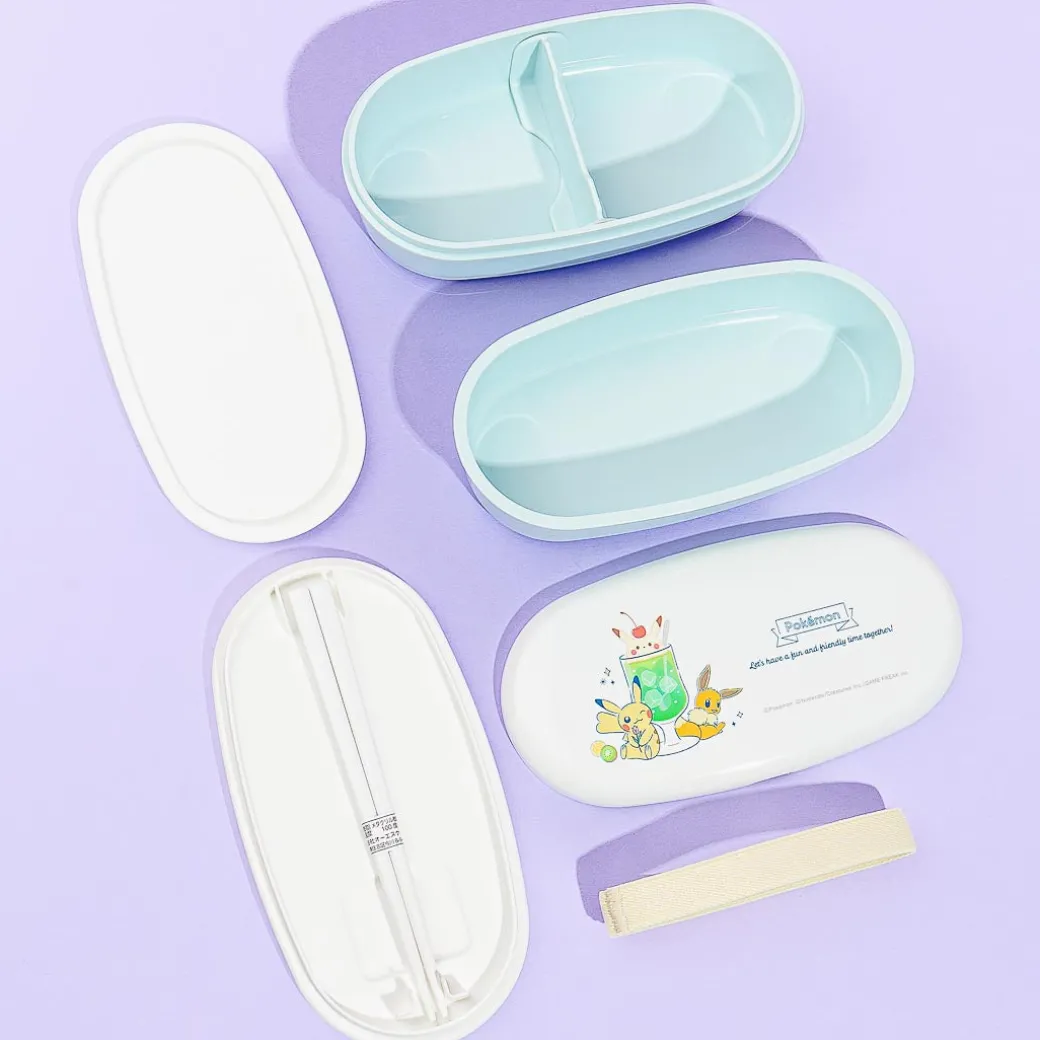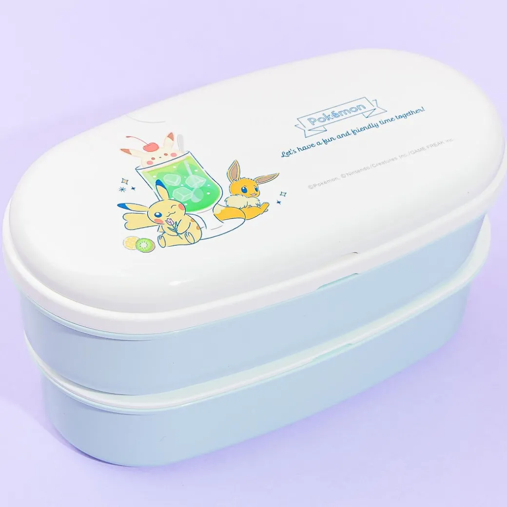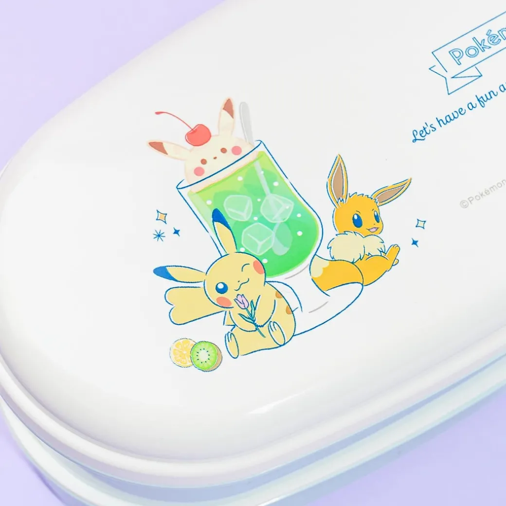 Take your fave home-cooked Japanese dishes to your picnic using this stackable oval bento box set! The main lid has super cute illustrations of popular Pokemon characters Pikachu and Eevee hugging a giant glass of cream soda! This set contains silver ions that prevent bacterial growth and it also comes with a reusable pair of chopsticks.