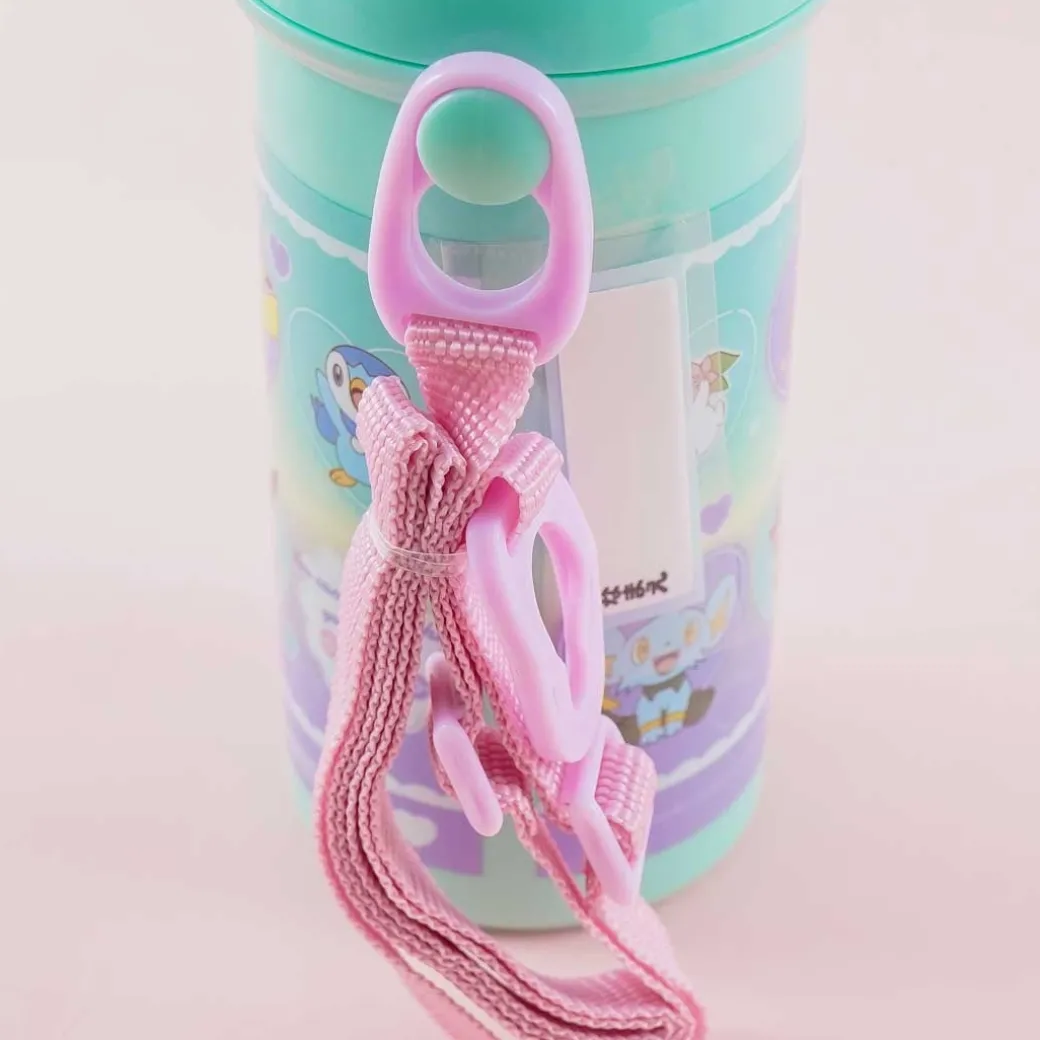 - A kawaii water bottle illustrated with Pokemon and hearts