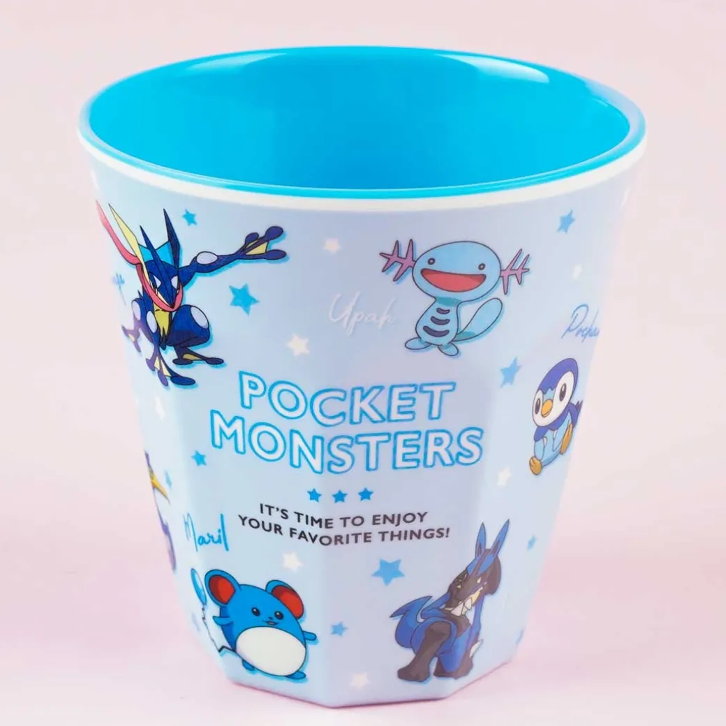 - A kawaii cup showcasing prints of different blue-colored Pokemon