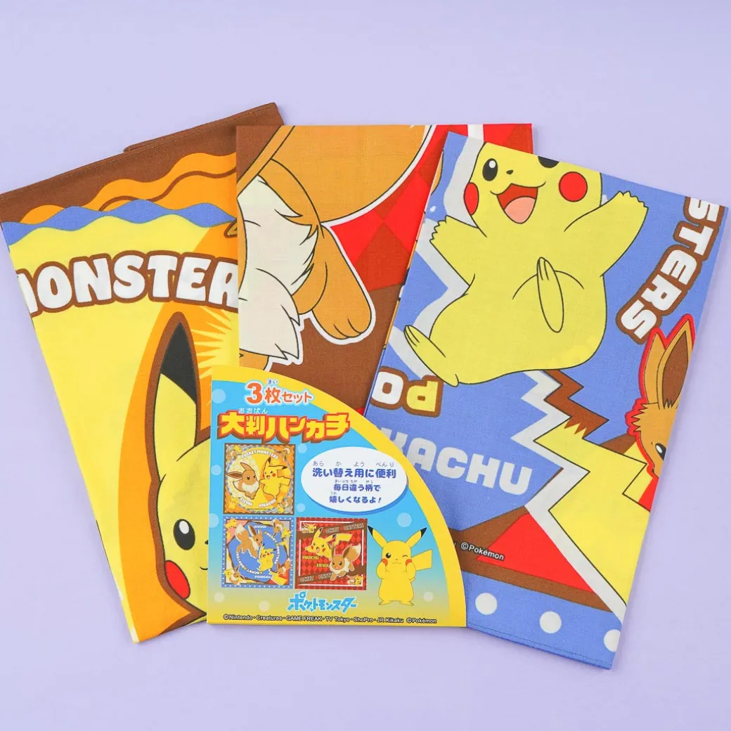 Wrap your bento box with this cute lunch cloth set! It’s has three designs featuring Pikachu and Eevee from Pokemon.