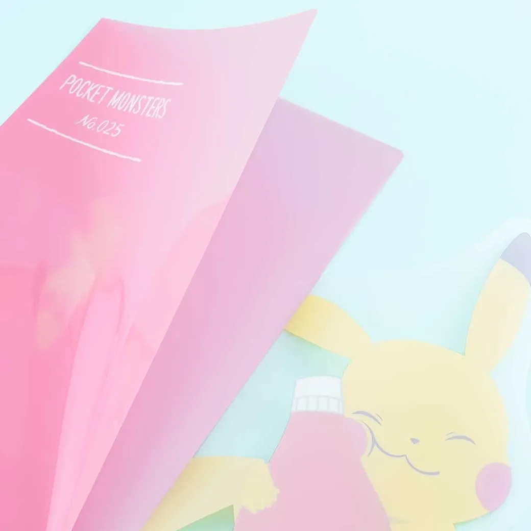 - A kawaii clear file folder showcasing Pikachu embracing a bottle of ketchup