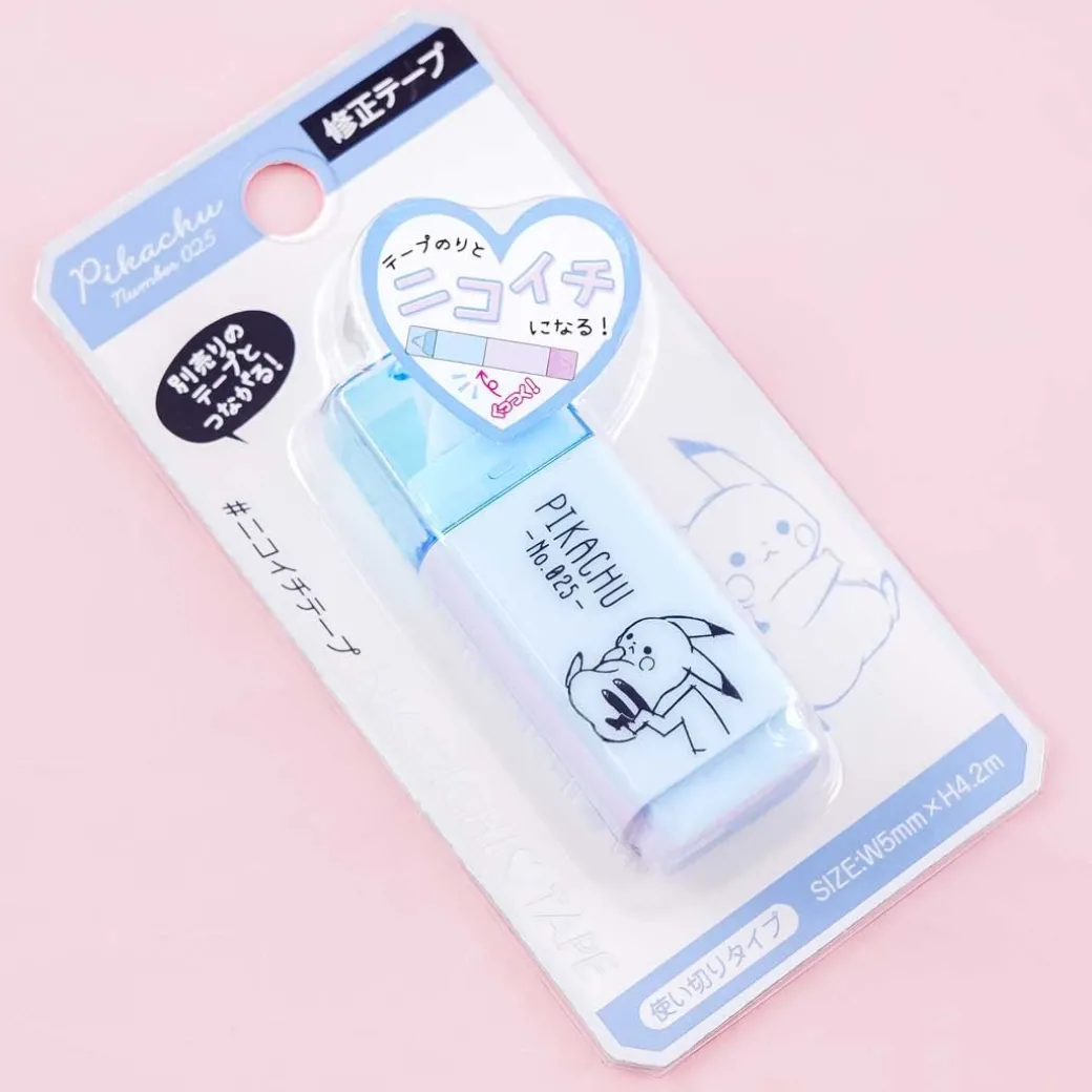 - A cute correction tape illustrated with a print of sad yet cutie Pikachu