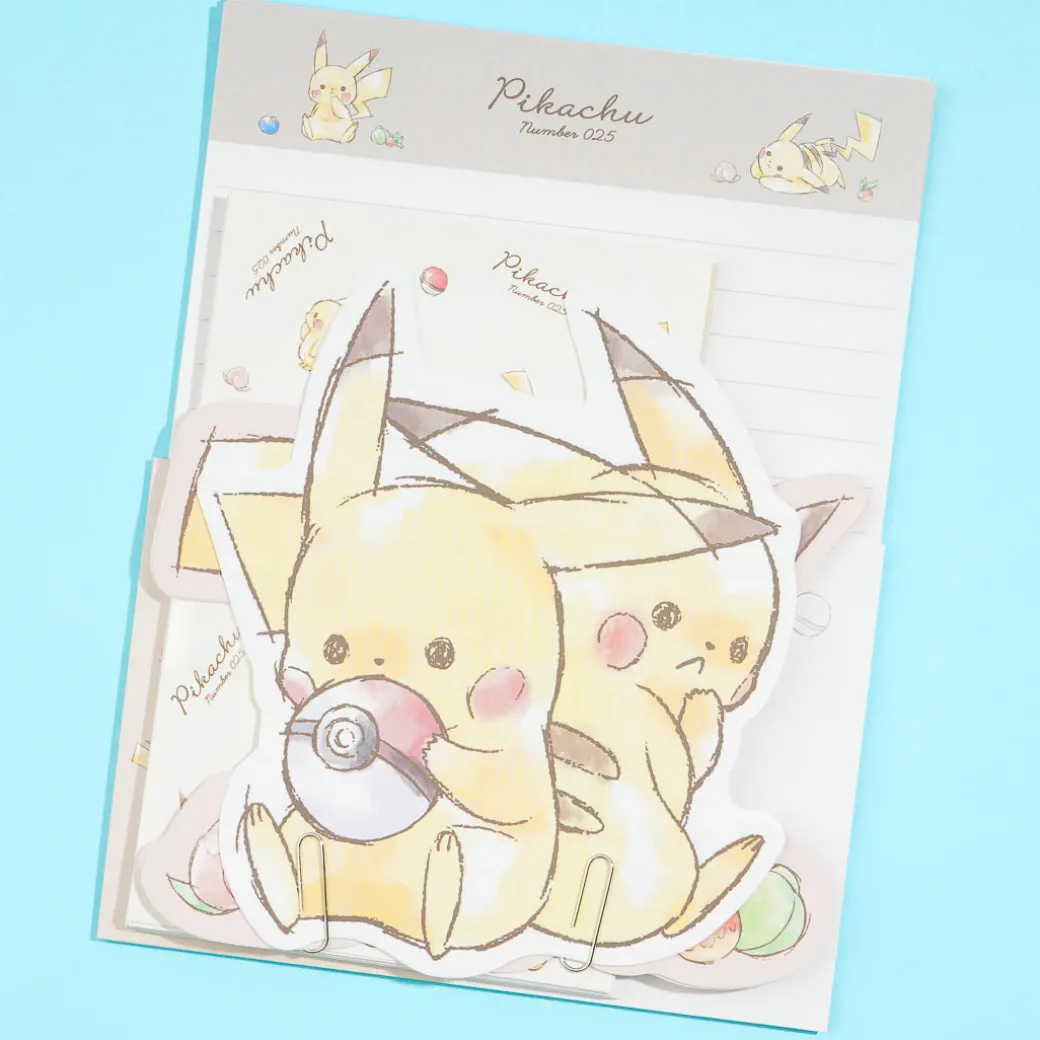 Enjoy exchanging letters with your besties using this kawaii set! It features normal and die-cut sheets featuring twin Pikachus playing together! You can also use these to send handwritten party invites.