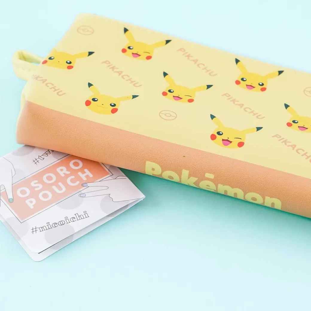 - A super cute pouch with multiple matching illustrations of Pikachu doing funny faces and lots of pokéballs