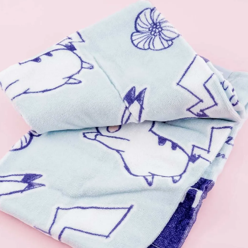 - A super cute set of long towels featuring prints of Pikachu running