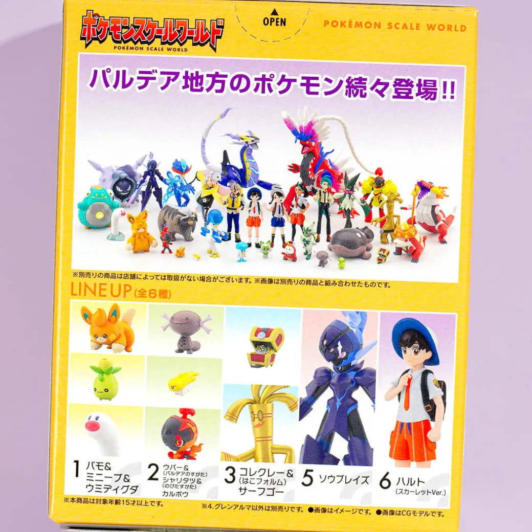 The “Pokemon Scale World Paldea 2” series brings the Paldea region from Pokemon Scarlet and Violet to life in 1/20 scale! This second installment features 11 figures with different sizes, from small Pokemon you can hold between your fingertips to larger ones you can hold with both hands! Collect them all to experience the magic of Paldea! It even comes with a free soda-flavored gum!