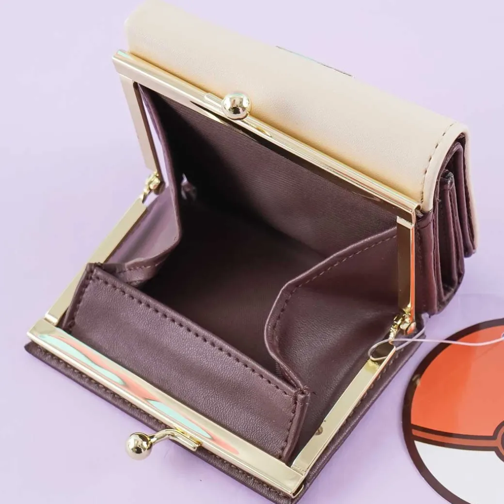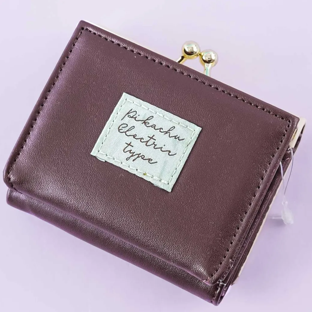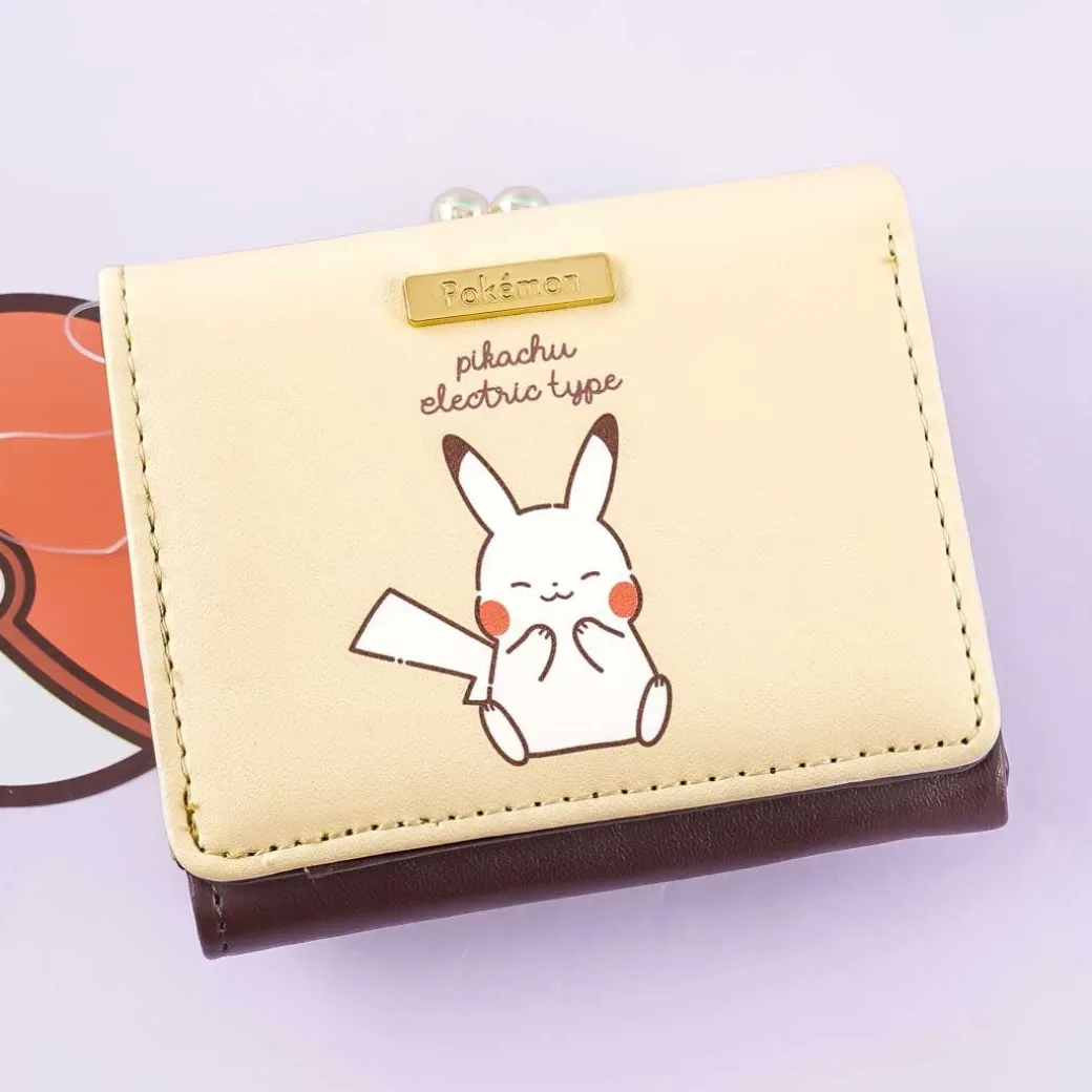 - A kawaii synthetic leather trifold wallet featuring a print of Pikachu