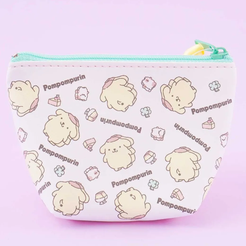 - A super cute zippered purse illustrated with Pompompurin, his friend Muffin, and pudding