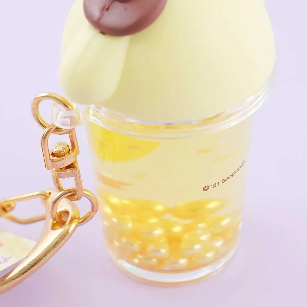 - A kawaii Pompompurin bubble tea charm with pearls inside it