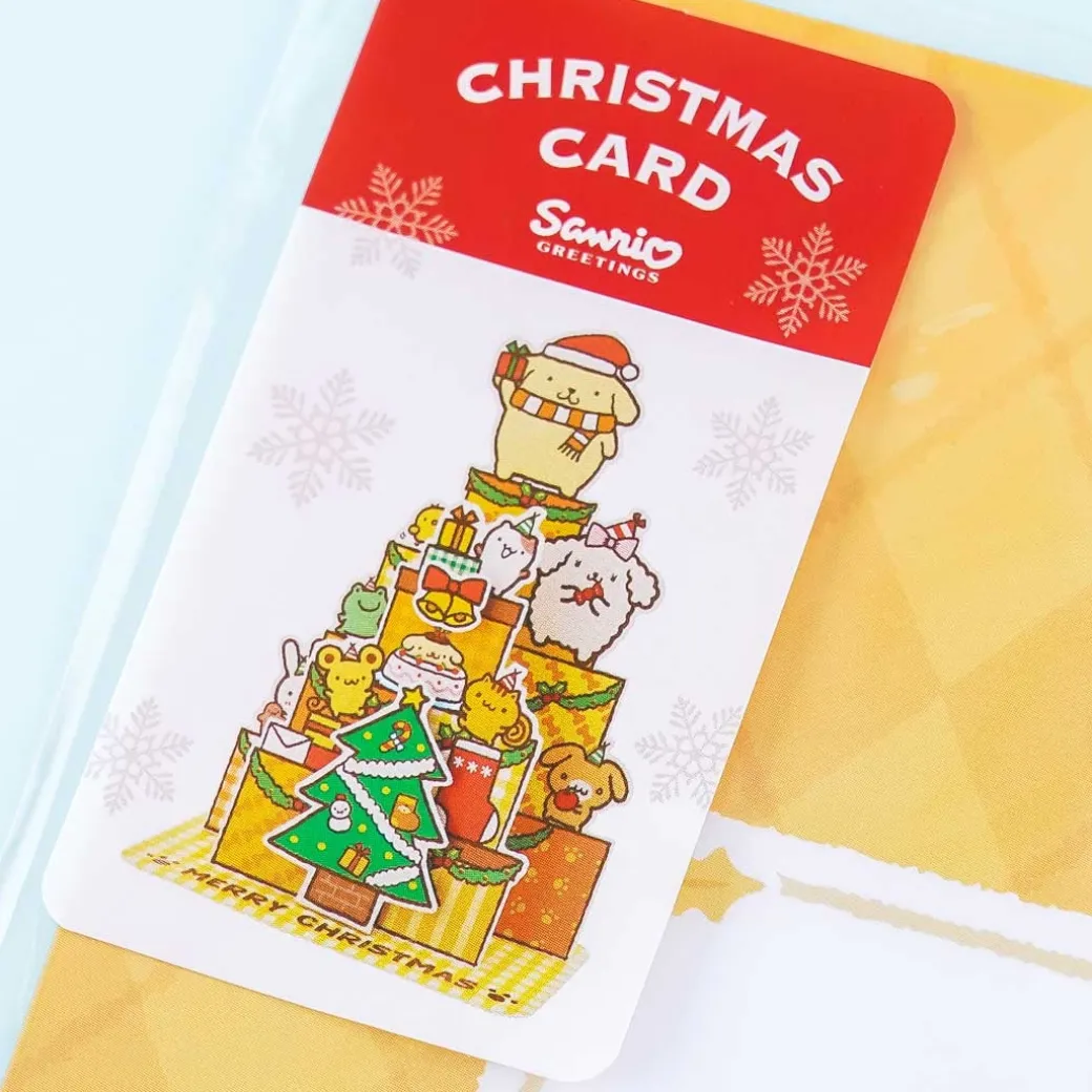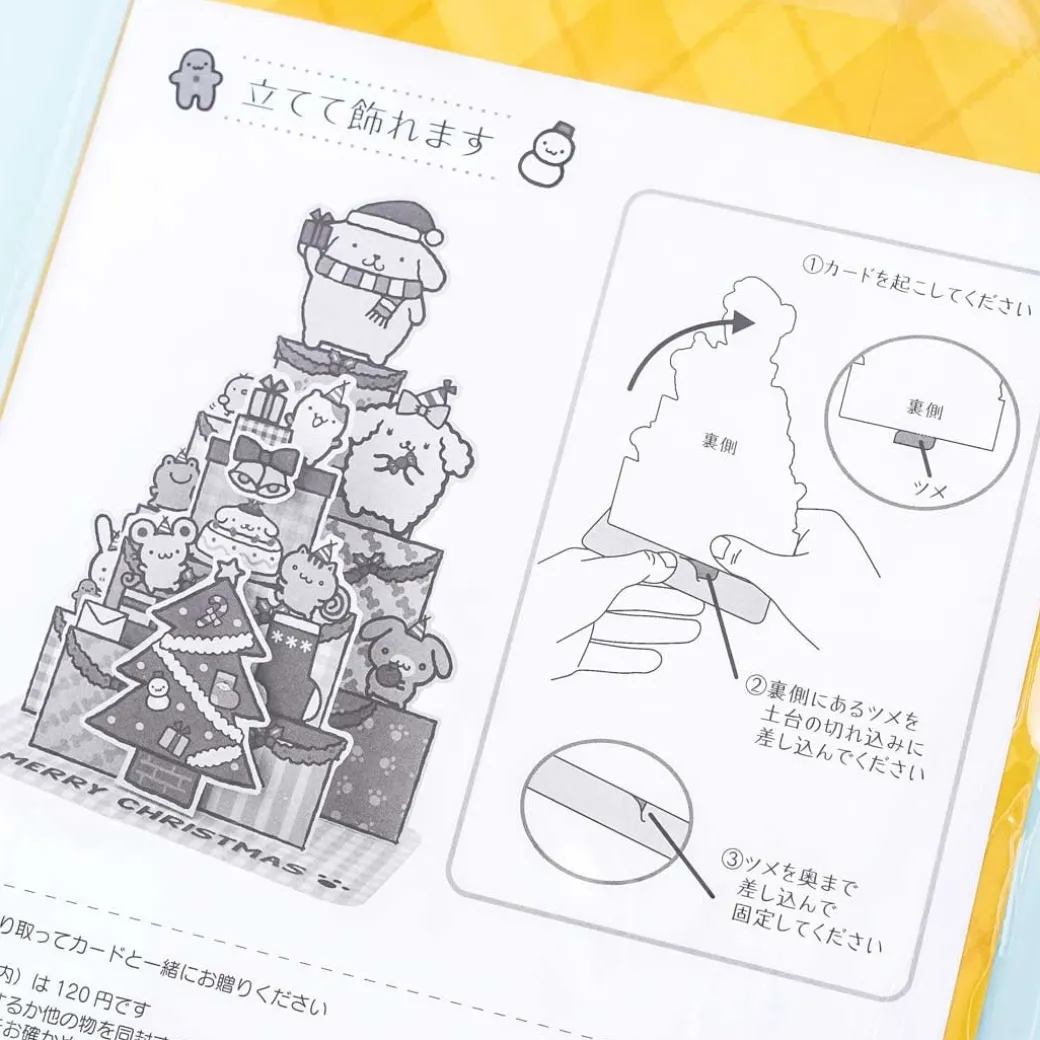 - A super cute 3D die-cut Christmas tree card featuring Pompompurin and friends