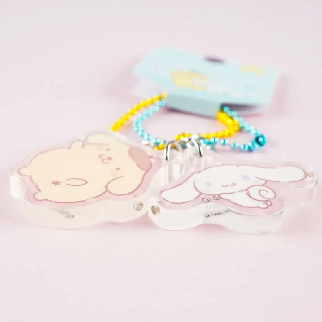 - A cute pair of acrylic charms featuring Pompompurin and Cinnamoroll