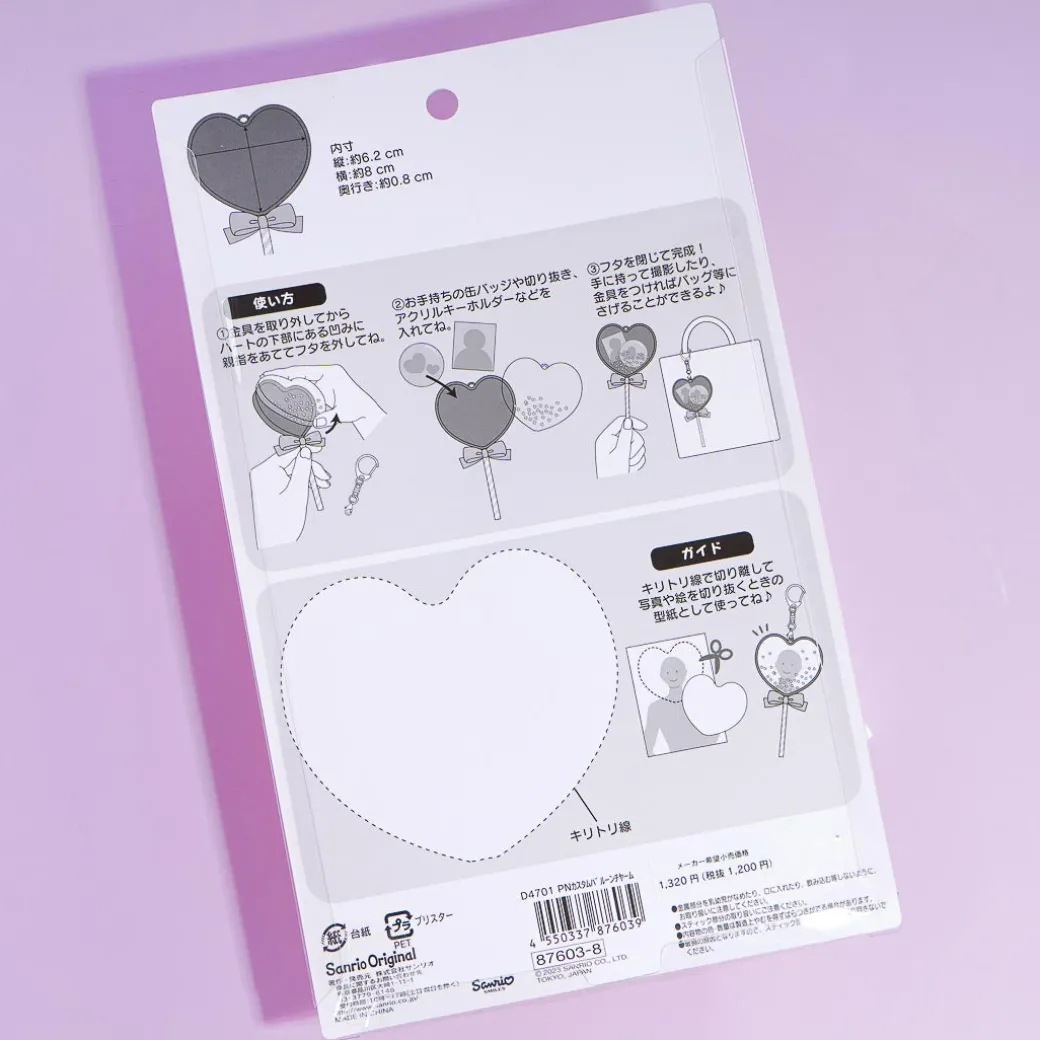 Decorate your favorite bag or pouch with this super cute customizable heart-shaped stick balloon charm. It has a small print of Pompompurin and it has a lot of glitter inside it. You can place your photo inside the balloon to customize it!
