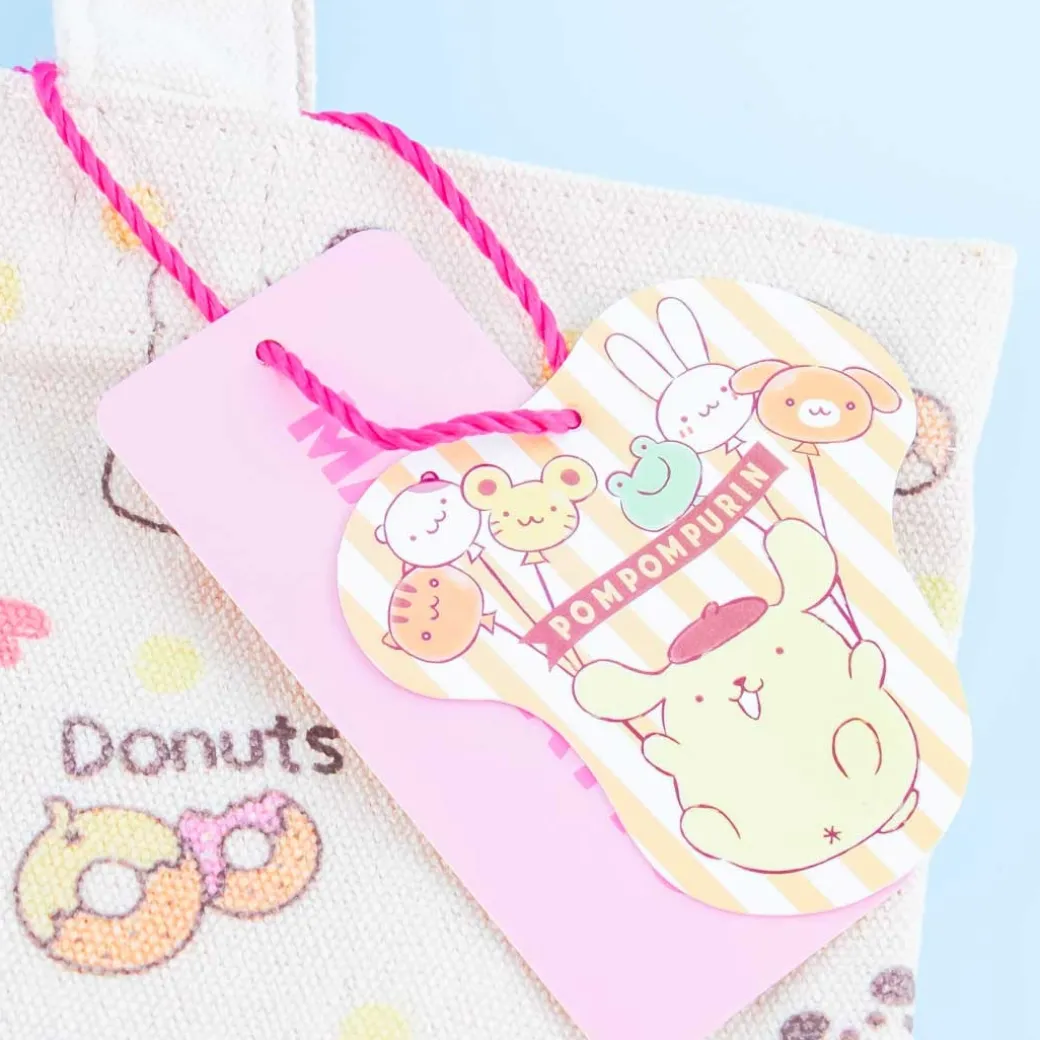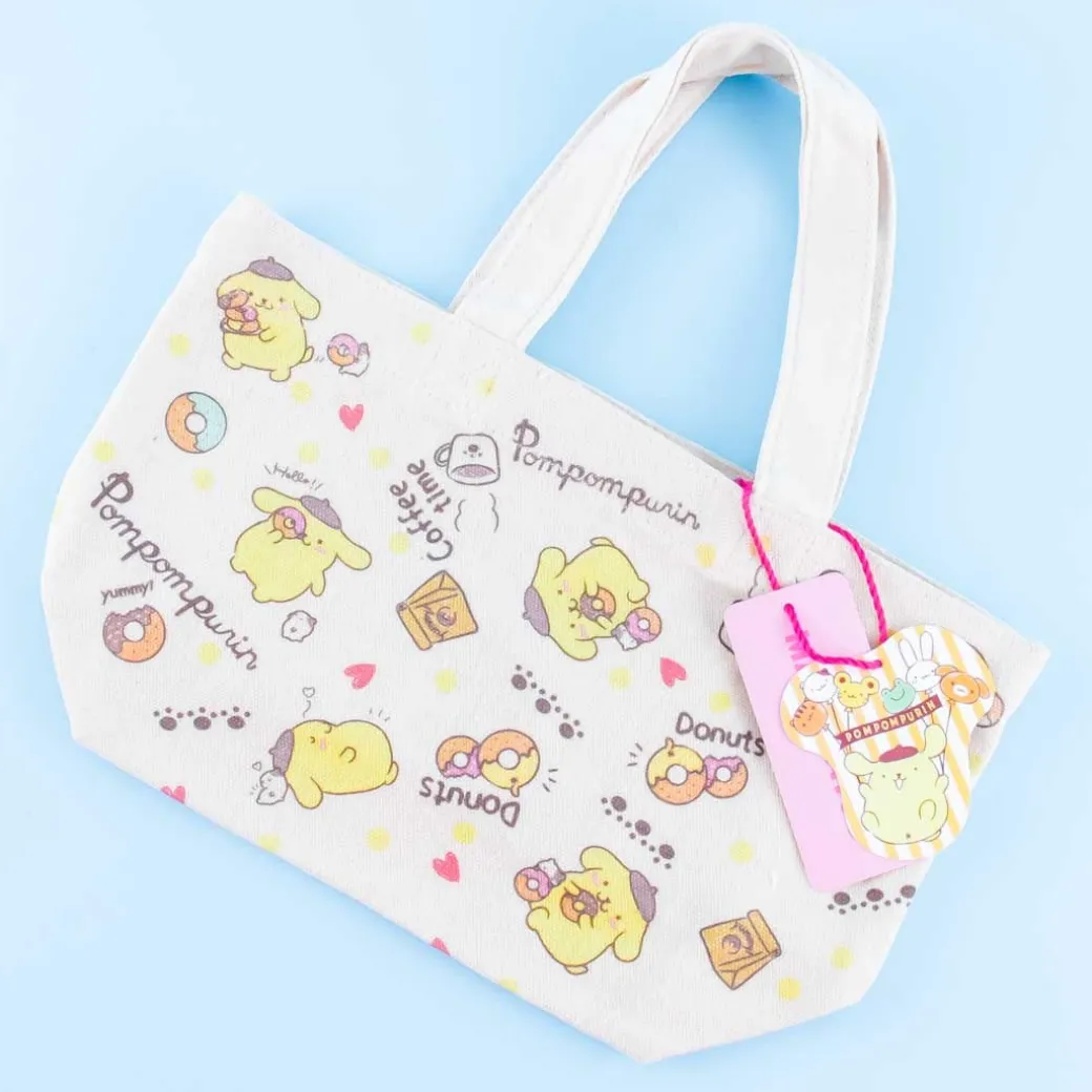 - A cute tote bag illustrated with Pompompurin eating donuts