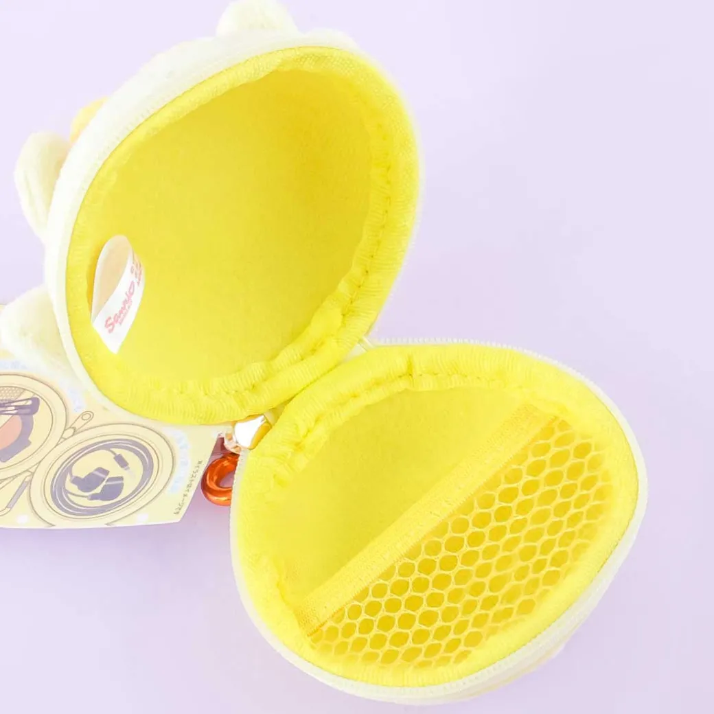 - A round fluffy Pomppmpurin earphone case with a ribbon