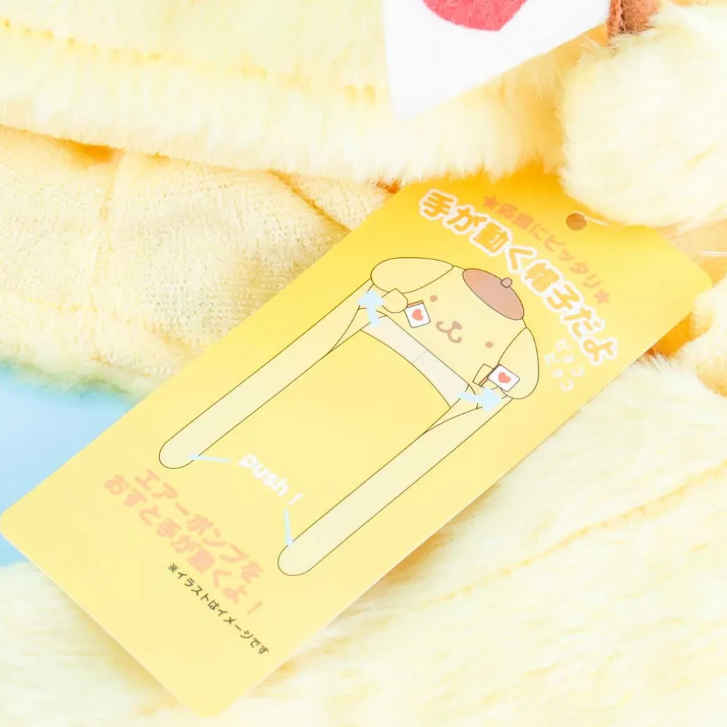 - A kawaii fluffy hat shaped like Pompompuring carrying flags to cheer you on