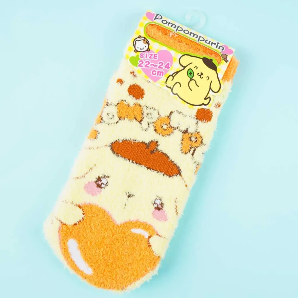 - A kawaii pair of socks illustrated with prints of Pompompurin