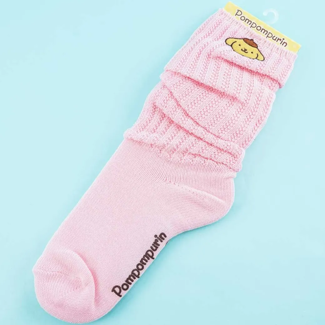 - A cute pair of pink loose socks with one-point embroidery of Pompompurin