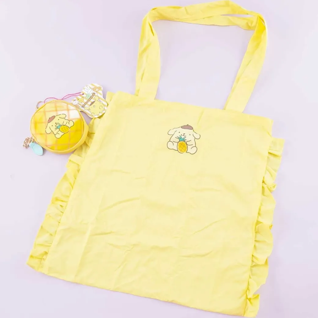 - A super cute frilly eco bag featuring a print of Pompompurin carrying a pineapple